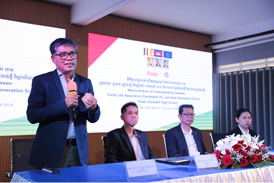 "Today marks yet another significant milestone as Forte Life Assurance embarks on a strategic partnership with the New Generation School Preah Sisowath High School (NGS), under the esteemed patronage of His Excellency Dr. Hang Chuon Naron, Deputy Prime Minister and Minister of Education, Youth, and Sports. It is noteworthy that Forte has long been engaged in collaboration with the Ministry of Education, Youth, and Sports, offering expertise, financial support, and developmental aid in the realm of education," emphasized Mr. Youk Chamroeunrith, Chairman of Forte Insurance (Cambodia) Plc.
