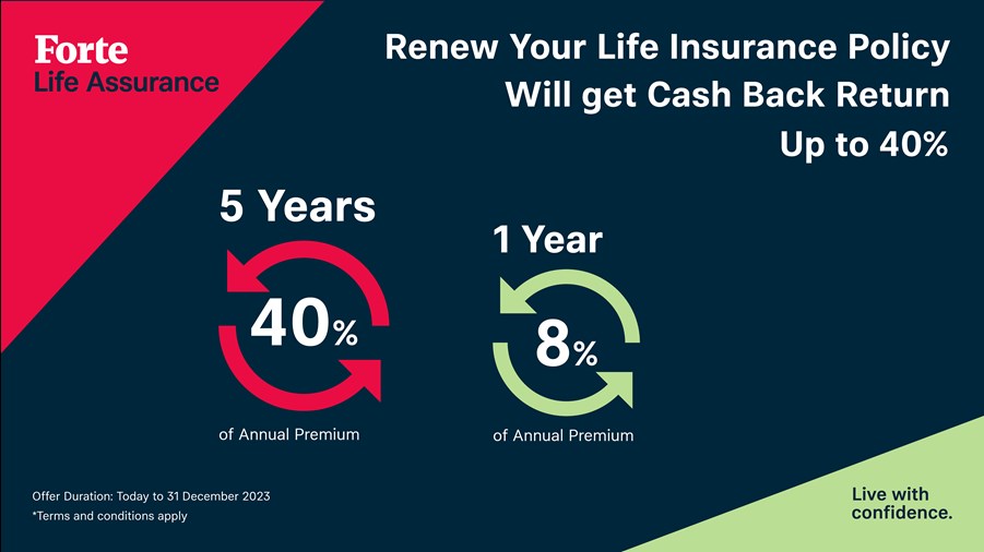 From now to December 31st, 2023, you can get up to 40% cash back on your annual premium simply by renew your policy on time.