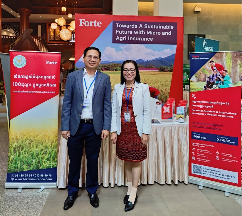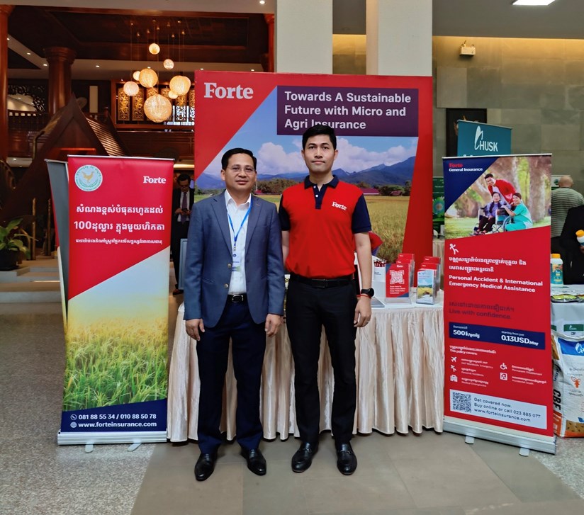 Forte, one of the largest and oldest insurance companies in Cambodia, is deeply committed to sustainability. This year, Mr Ny Lyhoung, Business Unit Head of Micro and Agriculture insurance, participated in the Cambodia Climate Change Summit 2023 (CCCS23), co-organized by the Ministry of Environment (MOE) and the Mekong Future Initiative (MFI).