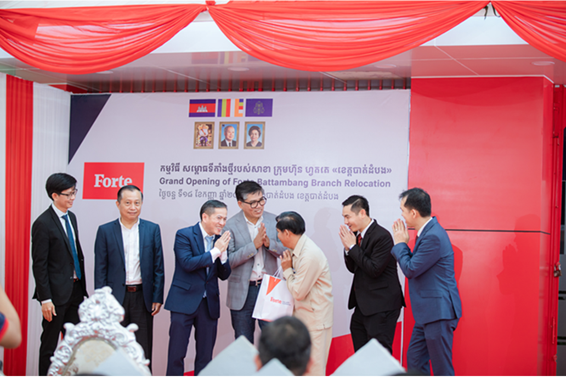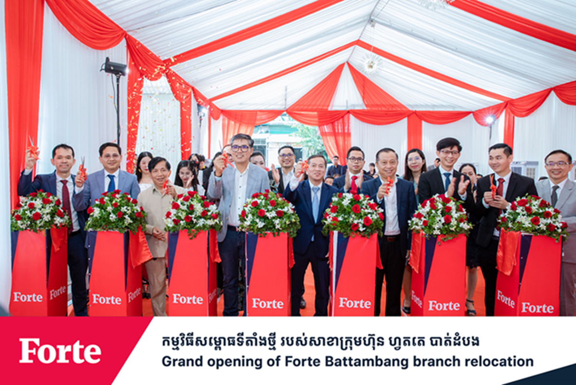 Forte, the leading insurance company in Cambodia, has successfully relocated our office in Battambang Province. The new office is located on National Road #5 in Rum Chek 4 Village, Sangkat Ratanak, Krong Battambang, Battambang Province (East of Lok Ta Dambang Kronhoung, Borey Ratanak Building). The office is moved to a more advantageous location with improved facilities and increased visibility for Forte. This move marks an important milestone for us as it aims to enhance the quality of insurance services available to the residents of Battambang Province.