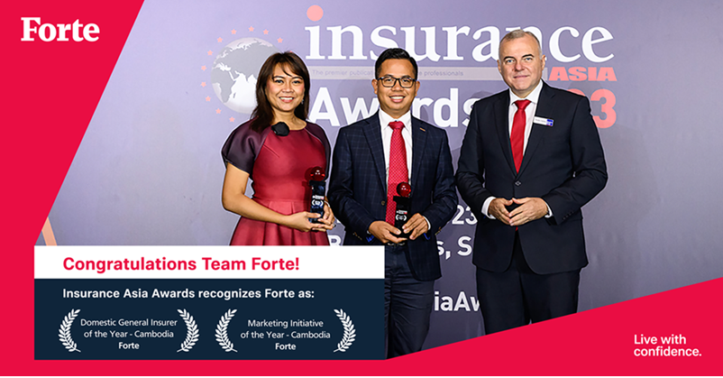 We are delighted to announce Forte recently won two prestigious awards - "Domestic General Insurer of the Year - Cambodia" and "Marketing Initiative of the Year - Cambodia” from Insurance Asia.