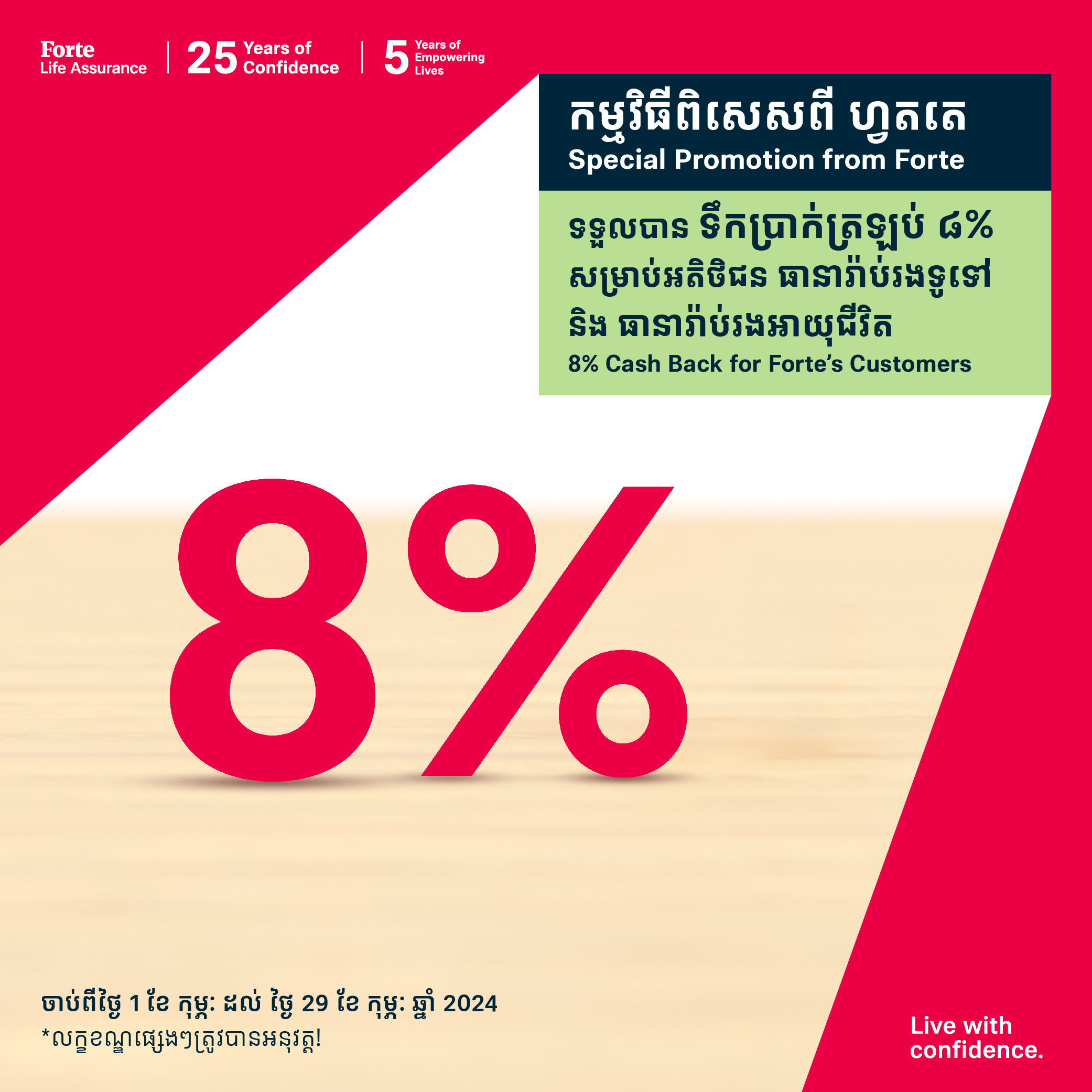 A special offer during Pchum Ben Festival, the more you save with Forte Life, the bigger gift you will receive from us.